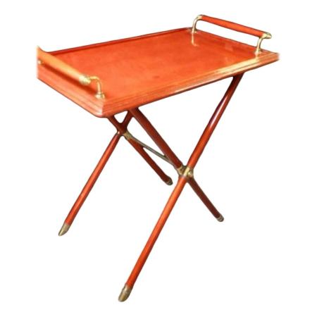 Italian 70’s Butler Serving Table In Brass And Red Lacquer