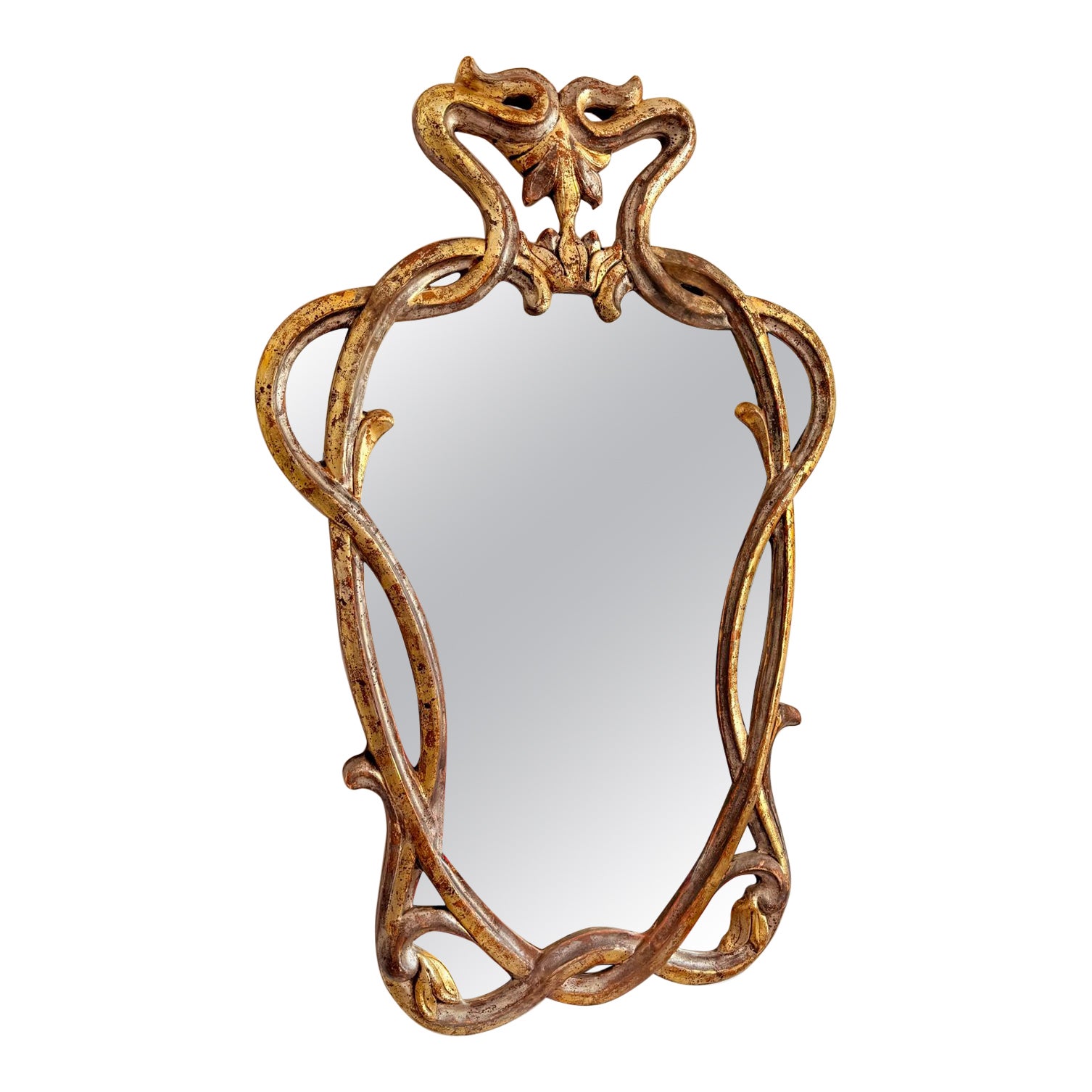 An Art Nouveau mirror in gilt silvered wooden frame, the typical whiplash Hector Guimard style. French c.1910. H-105cm. W-68cm. D-5cm.